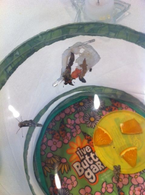 Today I had nothing to do. Really? Who has nothing to do? Actually, I had 1,398 things to do but nothing I really had to do. I didn’t have a structured plan, which makes me a little bit uncomfortable because I don’t know what to do with myself and the kids are home on break, which means they are going to want me to do something I probably don’t want to do! So I made everyone’s favorite cinnamon crumb cake, cut up some juicy, delicious strawberries and invited my self over to April’s house for breakfast. While there, I got to observe life unfold naturally and beautifully. Have you ever seen a chrysalis morph into a butterfly? Here this little thing is just hanging around, begins to shake and then magically just pops out of this tightly wound cocoon. It slowly stretched in front of our eyes, and unwound itself, opening up it’s crinkly wings and straightening them out, stretching and reaching one leg out in front of the other, sticking out it’s tongue and moving away from the walls that snuggled it in tight. It was simple and magical. OMG – I’m getting old! Watching butterflies emerge and loving it, just like bird watching. Oh yeah, I like that too… at least I had something to do!