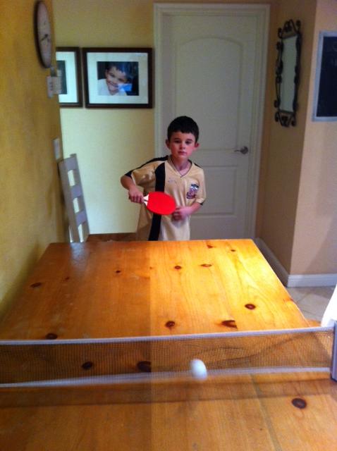 I fell asleep early last night and missed the lightening and thunder show, although I heard it was spectacular. I’m still not quite used to rainy weather and it changing my plans, and I know I’m going to have to get used to it, but I’m not there yet. I was hoping we’d get to the beach today on our last day of Spring Break, but I’m a wimp! So inside we stayed. We turned the kitchen table into a ping ping table. Char and I were bouncing the ball off the table and onto the wall and ceiling and all over the kitchen, laughing our heads off. Just don’t tell his mom!