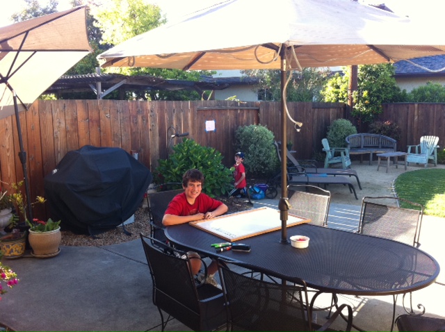 While Ilse was hear tutoring me, the gardner came to remove our favorite tree that has been infested with a nasty bug called thrips. This made me really sad because I loved this tree. Is it weird to love a tree? But really – it had character and was architecturally beautiful with great “bones” and has been with us for 11 years. But the tree had been dying for the last several years. I have great memories of C climbing to the top and J finding a middle branch to sit in and read a book. It used to provide a great shade canopy over our patio for our many BBQs and potluck dinners, but recently it just provided shadows. With the tree gone, our patio is very bright and the yard looks so much bigger. I guess that’s a good thing.