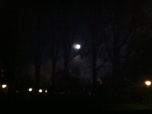 This is a view of the full moon tonight after a lunar eclipse. The sky was beautiful all morning and night.