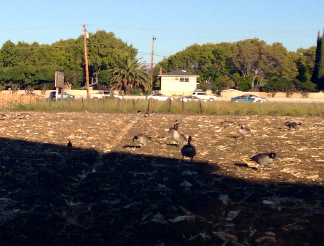 These aren’t exciting pictures and are hard to visualize, but I wanted to share the Canadian Geese that are in Sunnyvale. They hang out in the ponds outside the city center and in the morning fly overhead for breakfast at the old Corn Palace, eating the leftovers and grazing all morning.