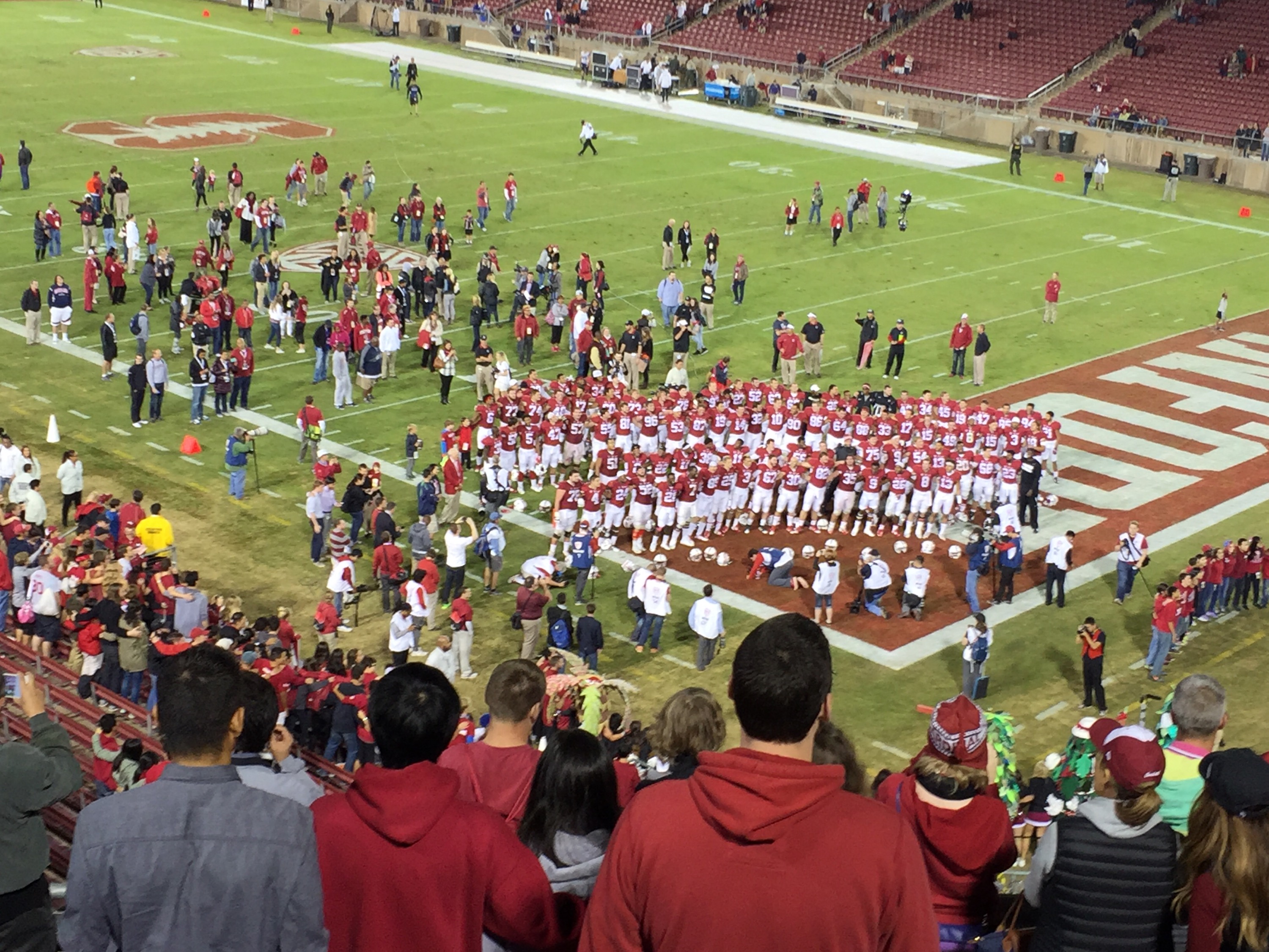 Being in the stadium is exciting too, watching all the action, cheering with friends, and just hanging out together, especially when Stanford wins.