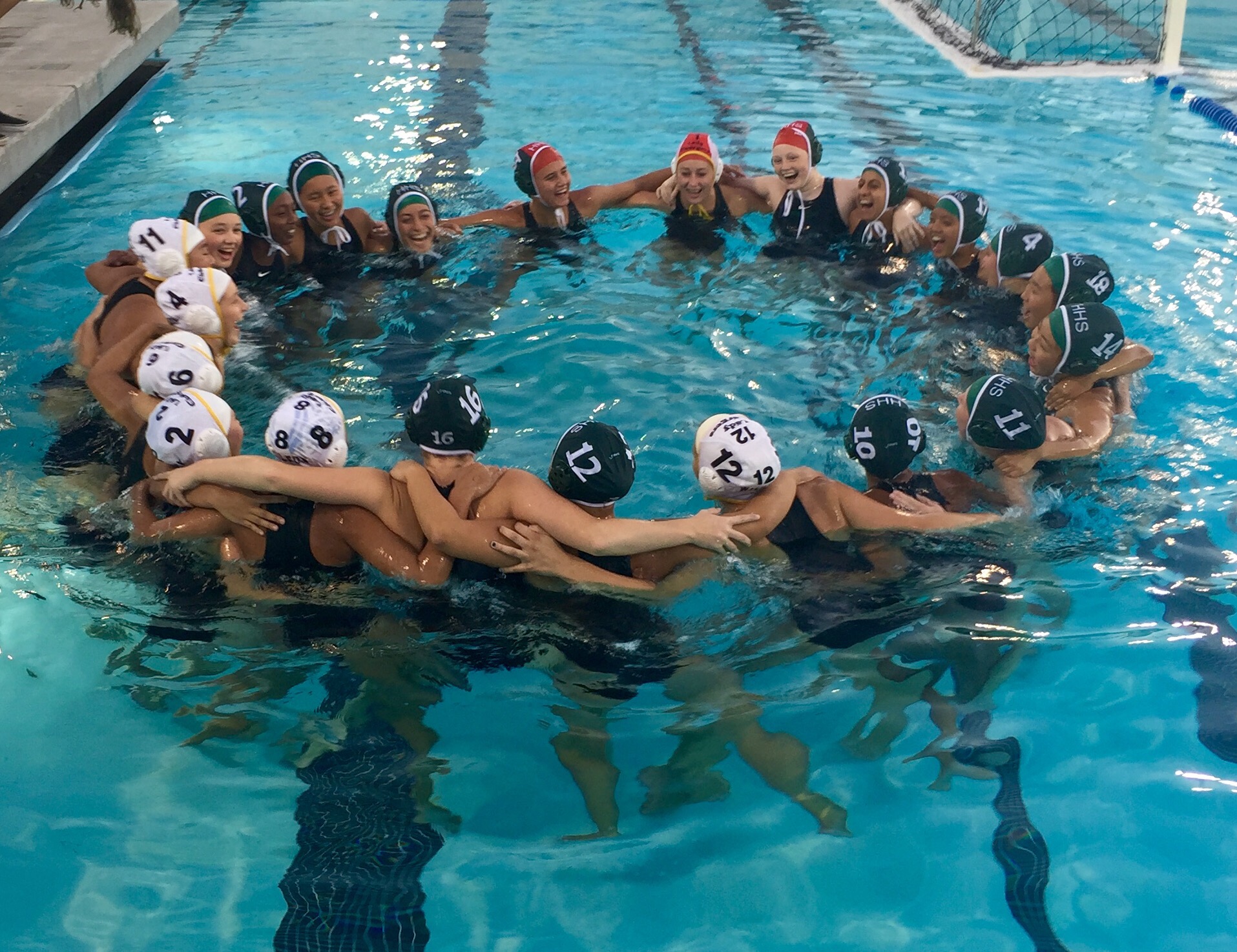 The coach of one team got a red card at the beginning of the last game of the Polo season. The girls were devasted and still wanted to play their last game. While they waited for the officials to figure out what to do next, they decided to join together in the pool while they waited.