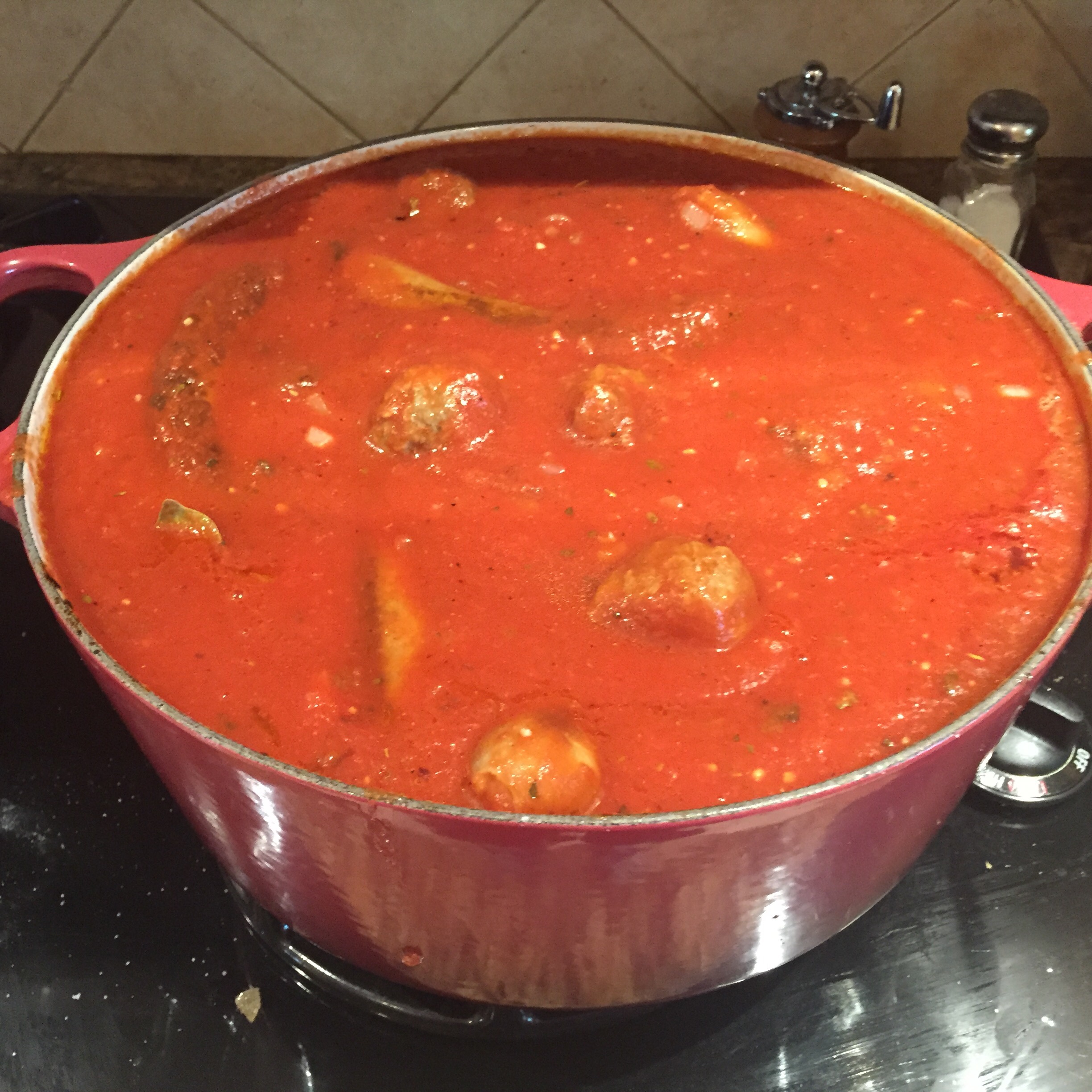 Following the recipe this morning made me think of my mama and our family and the love we’ve shared over spaghetti dinners. I loved the process and the smell in the house and was excited for my family to come home to enjoy it with me. I loved having it cooking on the stove all day, as I worked from home, getting up every so often to give it a stir, sniff and taste.