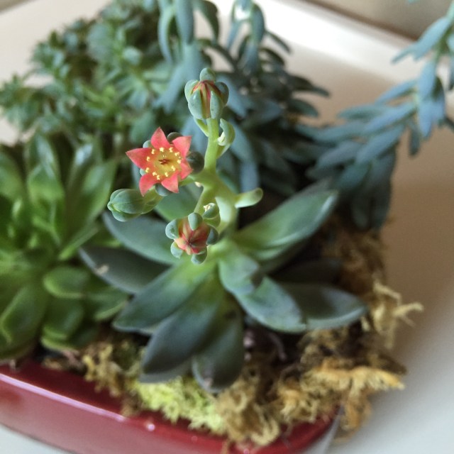My birthday succulents are blooming. I loved this little surprise, especially since we spent most of the day at home while Juliana continued to rest and recover.  Poor girl is still not feeling well.