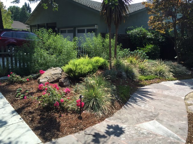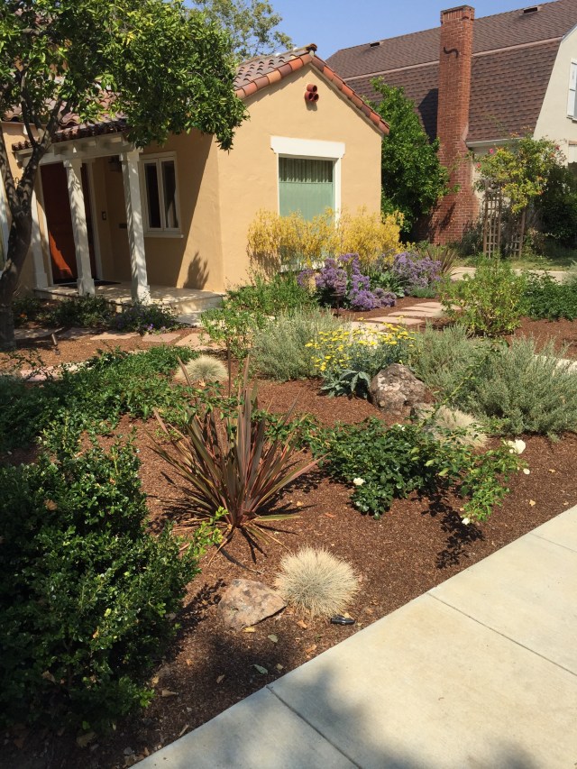 But seriously, I was going stir crazy.  Jeff and I snuck away for a walk for awhile to get fresh air and exercise. This made me happy!  We went looking for the best grass alternative front yards and gathered a few ideas, with our few thousand steps.